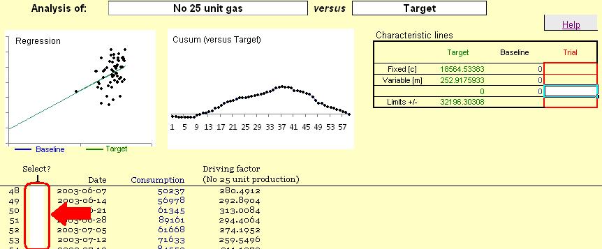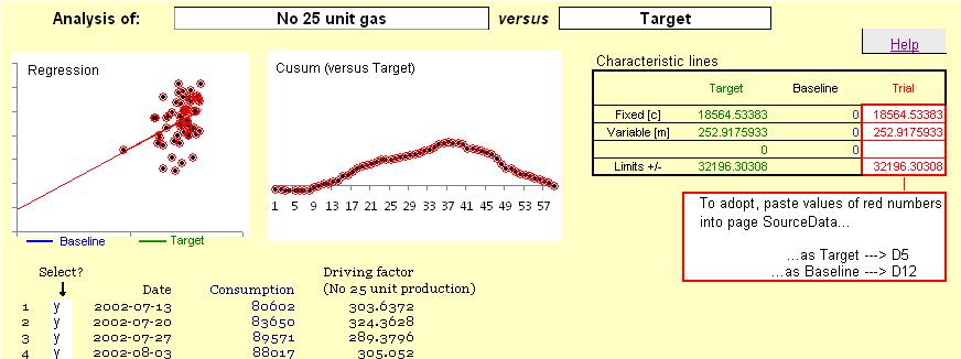 Note how there is now a green default characteristic on the scatter diagram. As long as you save the workbook, the line will reappear in future sessions whenever you examine this consumption history. |
